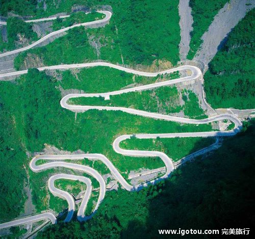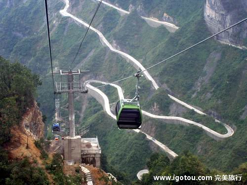 通天大道这条线路是中国有名的自驾线路之一,不光可以看到天门山的美丽景致,更重要的是可以体会到一种“惊险”。10.77公里的道路,共有99个弯,平均每行走100米就要过一个弯,而且180度的转弯比比皆是,可以说是一环套一环,一弯盘一弯,曲曲弯弯,直入九天! 随着通天大道盘旋而上,可以领略到天门山索道与蓝天白云相映成趣的蔚蔚壮观和奇绝高险,还能在经过索道中站房时感受大自然的奇妙和飘然。