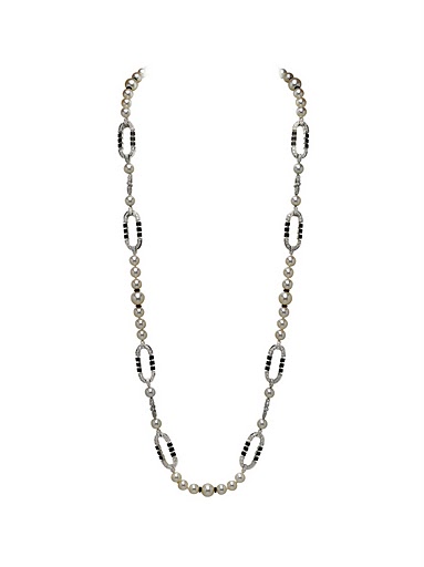 SLAVA项链,圆润饱满的珍珠串连着430颗圆型美钻(10.46克拉),晶莹剔透的钻石光芒映衬着珍珠柔白的光泽,展露出女性内在深沉而诱人的女性特质。