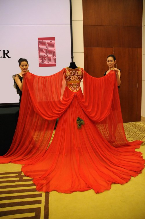 礼仪现场展示鸾凤双栖牡丹华服背面