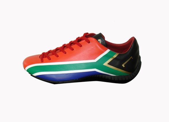 为突显南非世界杯主题,PIRELLI以南非国旗的色彩及专属图案为灵感设计该球鞋,更采用了其特有的微纤维彩绘印制技术以特制机器把国旗案烫在鞋面之上,体现出飘逸生动的效果,鲜艳的红、绿、蓝配合PIRELLI最畅销的球鞋款式,不单让人感受到南非的热情奔放,更增添了独特的时尚型格;鞋底及鞋垫以高技巧缝制技术(Strobel construction)缝合,大大加强了鞋履的灵活度及轻盈感,鞋里更加入了特别设计的脚底软垫,不但加强了舒适度,而且质感柔韧适中,让穿着者自由穿梭于绿茵场上,日常穿着更是处处如履平地。