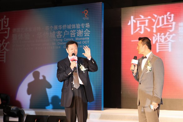 体验·华侨城客户答谢会现场,主持人胡一虎与华侨城股份有限公司董事长任克雷互动