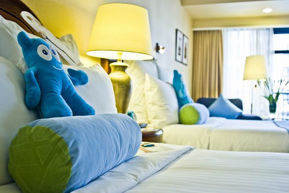 酒店豪华房以悦目贴心的蓝绿色调突显世博主题简洁、现代的设计理念。客人可坐拥绿色景观阳台,俯瞰酒店鸟语花香的空中花园。此外,客房经过精心设计和布置,墙上挂有艺术韵味的老上海迷人景象照片,蓝色风情的床单靠枕上枕着可爱的世博吉祥福娃海宝,茶几上放着精心甜蜜的世博小礼盒,为客人提供一个最舒适、最私人及最松弛的住宿空间。
