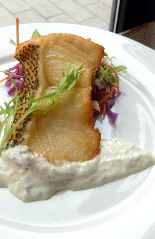 主菜:香煎银鳕鱼配奇异果芥末酱Main Course:Pan-fried Codfish with Soya Sauce