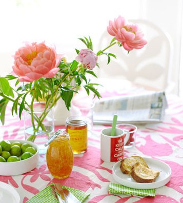 浓油赤酱的食物在夏天看起来总是提不起胃口,清新的餐厅配色或许能帮助你增加食欲。牛油香味的面包与甜蜜果酱的组合,就如同这个房间带给人的感觉一样香甜。