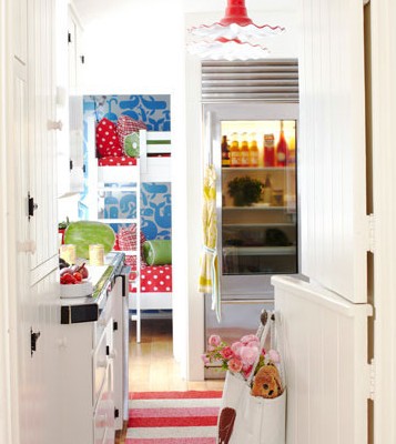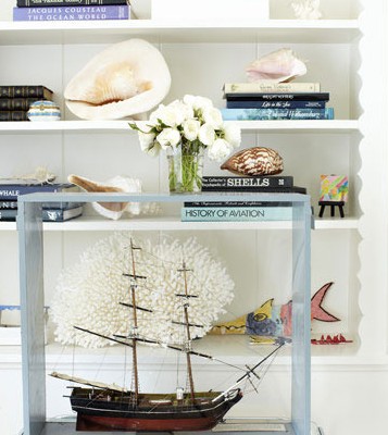 船模型,鲨鱼墙贴和贝壳装饰物折射出加州的海边生活。当孩子长大以后,这个现以装饰品居多的收纳柜将华丽转型成真正存放书籍和生活用品的地方。