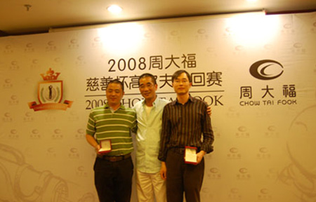 中午12点半,周大福华东区总经理韩建生先生为赛事开出彩球,礼炮声中,18洞同时开球,一场激烈的比赛就此展开。经过5个多小时的比赛,一份让现场所有人都惊讶的成绩单新鲜出炉,今天居然打出两个一杆进洞,王俭先生在3号洞打出一杆进洞,侯雷平先生则在12号洞打出一杆进洞,却唯独无缘设有一杆大奖的5号洞。然而这个成绩也已经非常难得,主办方当即决定,临时为这两个球洞增设一杆进洞奖项,由韩建生先生亲自颁发奖杯,并分别提供一条价值5000元的钻石吊坠和一条价值3000元的钻石吊坠作为奖品。这样的幸运大奖同一天在同一场赛事出项两个,是极其少见的,这不能不说是慈善之光带来了幸运之神。
