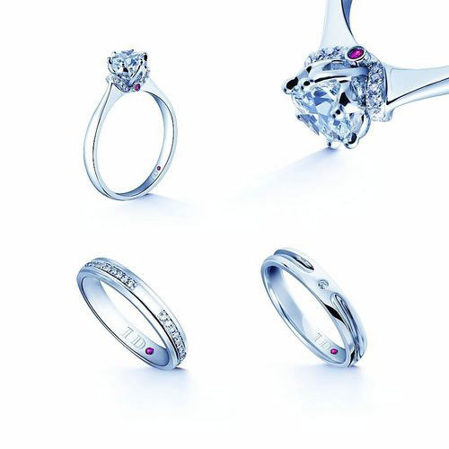 皇冠形戒托强调出隆重感,两侧群钻如若维多利亚服饰的拉夫圆领,散发出天生的贵族气质。对戒以凹凸的对比呼应出彼此的默契,内镶的红宝石低调而充满神秘色彩。