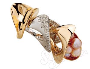 Ghea系列的设计从流水萃取灵感,成就3D体概念。Ghea珠宝系列形状独特,饶富新颖的雕塑美感,佩戴时顺贴娇躯,为女士增添光芒与色彩。指环以心形镶饰彩色宝石、珍珠或铺镶美钻,环身刻有希腊回纹图案。