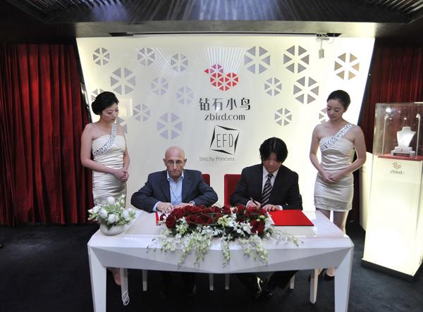 2010年10月20日下午,知名网络钻石品牌钻石小鸟与以色列着名出口商E.F.D在钻石小鸟上海体验中心内签订战略合作协议。