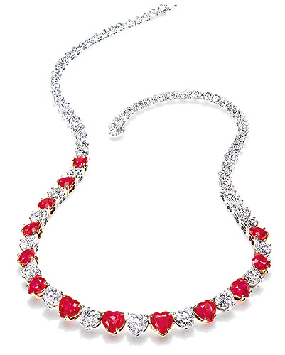 鲜明的红色,象征了激情与美,代表的是热情与自由,宝石的世界中,红宝石则是彩色宝石之王,无可取代。红宝石的成份与象征英文名为Ruby的红宝石,无论在圣经或现实中都是最为珍贵的彩色宝石。色彩、由里而外的浓郁热情,从古到今被广泛运用在各式珠宝镶嵌之上,举凡戒指、项链、耳环,手环,都可以见到红宝石那耀眼的红色,显于外的热情奔放与尊贵,是每个女人身上不可或缺的。