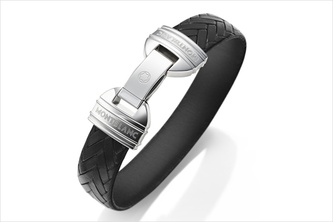 Young Meisterstück皮手镯设计大胆并富有几何线条美,紧扣大班笔的设计精华:与织皮手带相连的长方扣带有装饰艺术味道,扣面刻上万宝龙星形商标;星形商标脱胎自欧洲第一高峰勃朗峰山巅的六条冰川,后者亦是万宝龙品牌名称的来源,所有万宝龙产品系列的设计主题皆与六角星标志紧扣。