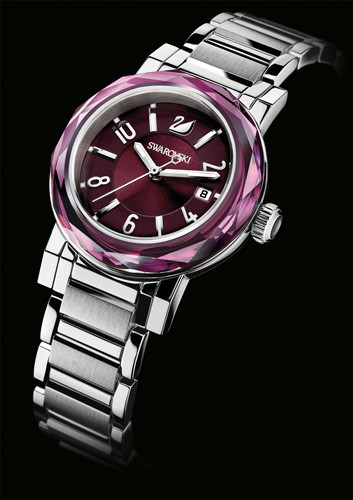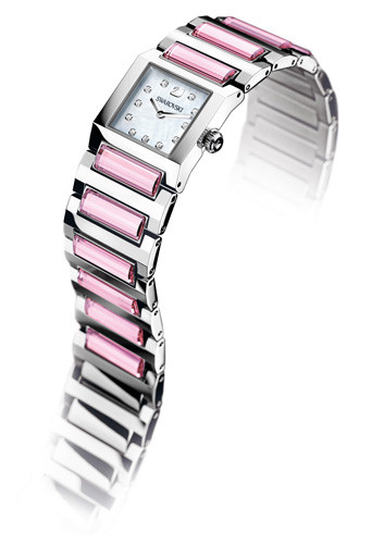 与平面方形不锈钢表圈形成巧妙对比的,是时尚迷人的圆形透明设计:镶有天鹅标志与圆拱形仿水晶的表冠。“Dresstime” 手表另备有透明仿水晶款式,提供更经典的设计选择。不锈钢表带上均匀地镶嵌着12颗透明仿水晶,而表盘则采用同色调的银色设计,并镶有11颗透明仿水晶。极尽妩媚的粉红色 “Dresstime” 手表,以12颗玫红月光色仿水晶搭配美丽别致的珍珠贝母表盘,更能表现出醉人的时尚风范。这款极其细致的多面切割手表,绽放令人惊艳的耀眼光彩,势将成为2010年妩媚时尚的现代女性的必备配饰。
