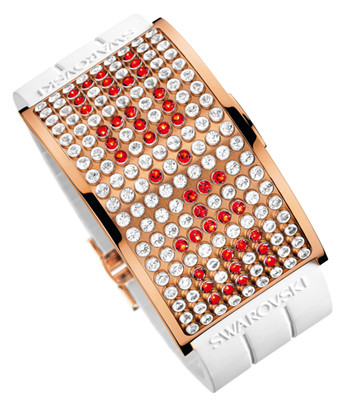 施华洛世奇在2010年推出白色 “D:Light” 手表,作为旗下 “D:Light” 系列的延伸,并保留了首款 “D:Light” 手表的所有制作和设计特色。这款手表采用先进技术,以171颗施亮切割仿水晶构成长方形表盘,展现媲美手链的出众外形。几乎难以察觉的仿水晶包边以优质的不锈钢制成,赋予这款兼具首饰和时计功能的创作,随意表现不同定位的自由。