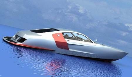 瑞典公司Vizualtech为阿联酋迪拜赛艇公司开发的Vizualtech R8 Catamaran就借鉴了奥迪引以为傲的R8超级跑车的许多特点,这款双体船把陆地上速度机器搬到了水面上。它和在日内瓦车展上大放异彩的Rinspeed sQuba不同,不仅仅是为了哗众取宠,把汽车改造成可以下水的机器,Vizualtech R8 Catamaran是速度极快的水上赛艇,它是以奥迪R8为灵感设计另外一种速度机器,而且,它的长度达到了8.8米,将近是奥迪R8的两倍。