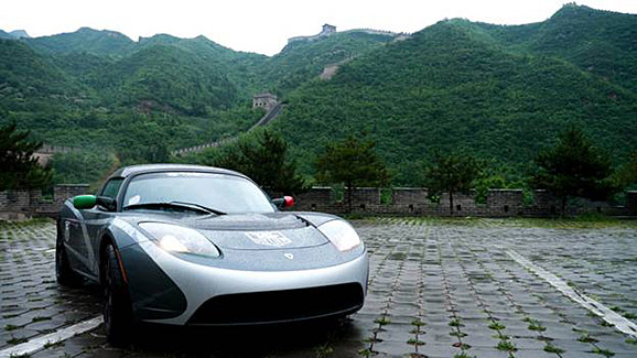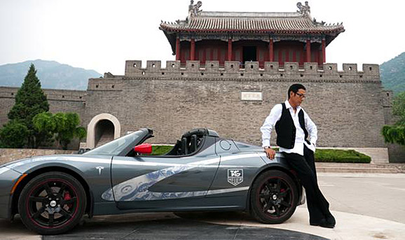 由着名腕表品牌Tag Heuer赞助的Telsa Roadster电动跑车全球巡游近日来到了中国北京,Telsa Roadster跑车在中国标志性建筑长城脚下留下其巡游的足迹。