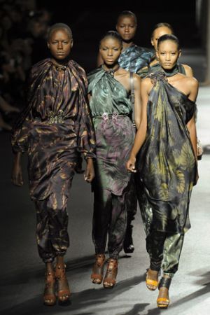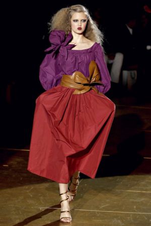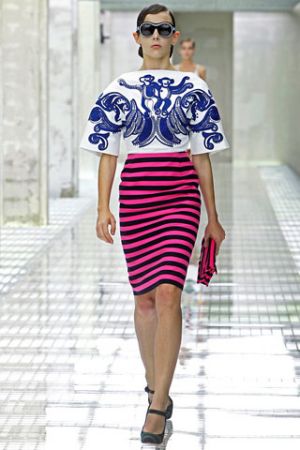 Alber Elbaz可能比其他设计师更擅长表达女性的需求。而且他有能力把客观上简单的东西变成特别时髦的东西。本季,他呈现出轻松、露出大腿的褶裙,豹纹紧身上衣,耀眼的颜色,热带真丝印花纱丽,睡裤,还通过蝴蝶胸针做了强调。当然,别忘了这些舒适的平底鞋,同样是女性的需求。